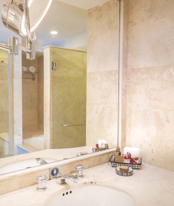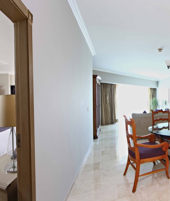 The two private balconies highlight the eye-catching views in this spacious suite: one balcony overlooking Nichupté Lagoon, and the other overlooking the Caribbean Sea. The Laguna Suite features a calming master bedroom with king bed, as well as a separate living and dining area with a well-equipped kitchenette.