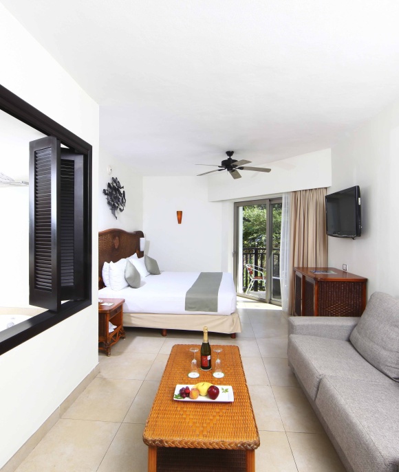 The in-room jacuzzi is the perfect spot for enjoying a glass of wine or a little bit of room service. You’ll have access to the exclusive Select Club areas including the adults only swimming pool and beach-club section. The Select Club Deluxe has 441.32 FT² of living space and comfortably sleeps 3 adults. The jungle views offer the opportunity to see some of the resident Howler Monkeys and Spider monkeys that hang-out (no pun intended) around the resort.