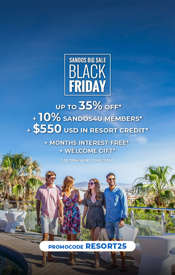 To validate this promotion, you must book directly with our call center or at sandos.com between November 1 and December 2, 2025. Travel dates available at Sandos Caracol Nature Resort, Sandos Cancun, Sandos Playacar, and Sandos Finisterra between November 1, 2025, and December 31, 2026. Promotion valid for a limited time and available only at the properties mentioned. Maximum discount applicable on certain dates. Not combinable with other promotions. This promotion is valid based on the Cancun time zone (GMT-5).