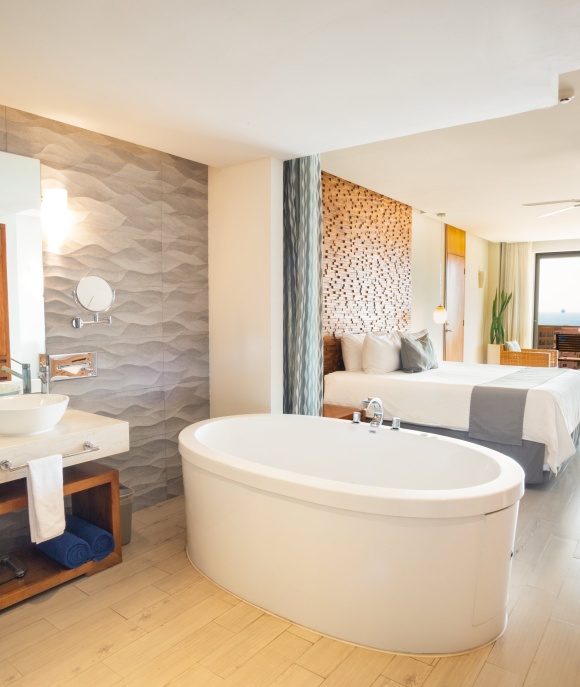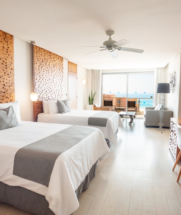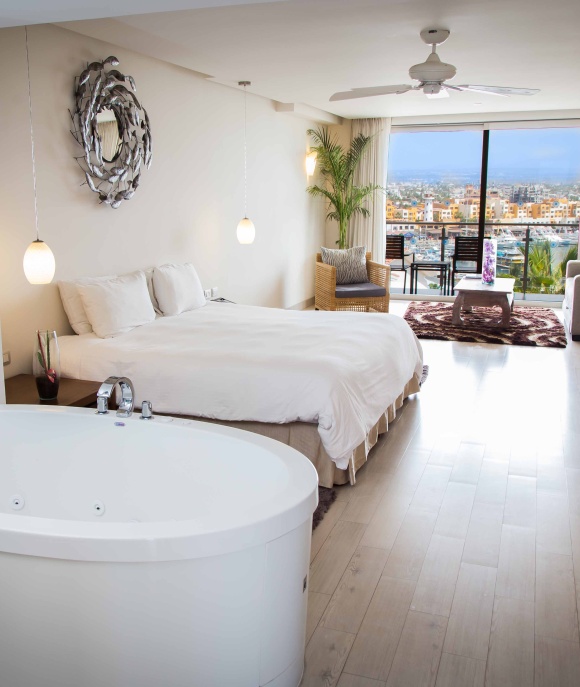 Staggering clifftop views and contemporary style! Our Finisterra Suites Section is set atop of the famous cliff-face in a secluded part of the hotel. Guests in this section have access to an exclusive VIP pool area on the clifftop deck. The suite features beautiful decor and sets the bar for comfort and convenience when it comes to suites in Los Cabo.