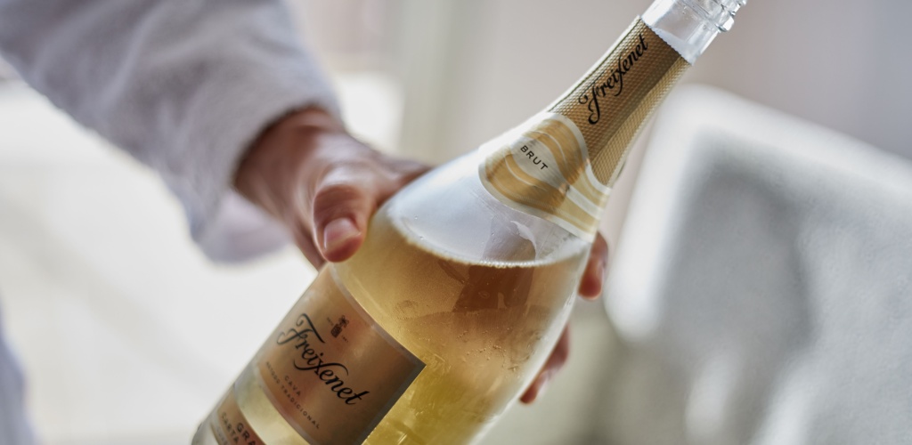 - Bottle of Cava Freixenet Carta Nevada or similar