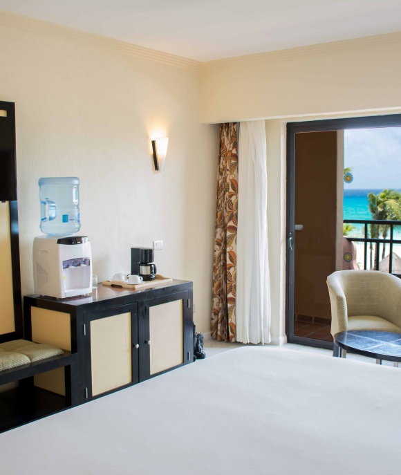 The Select Club Ocean Front rooms offer 322 square foot of living space with warm Caribbean décor and large comfortable king-size bed. The Select Club Ocean Front rooms are in our exclusive adults only section located in-front of the beach. As a guest in this section you’ll not only get gorgeous Caribbean Sea views, but also access to upgraded services an exclusive areas.